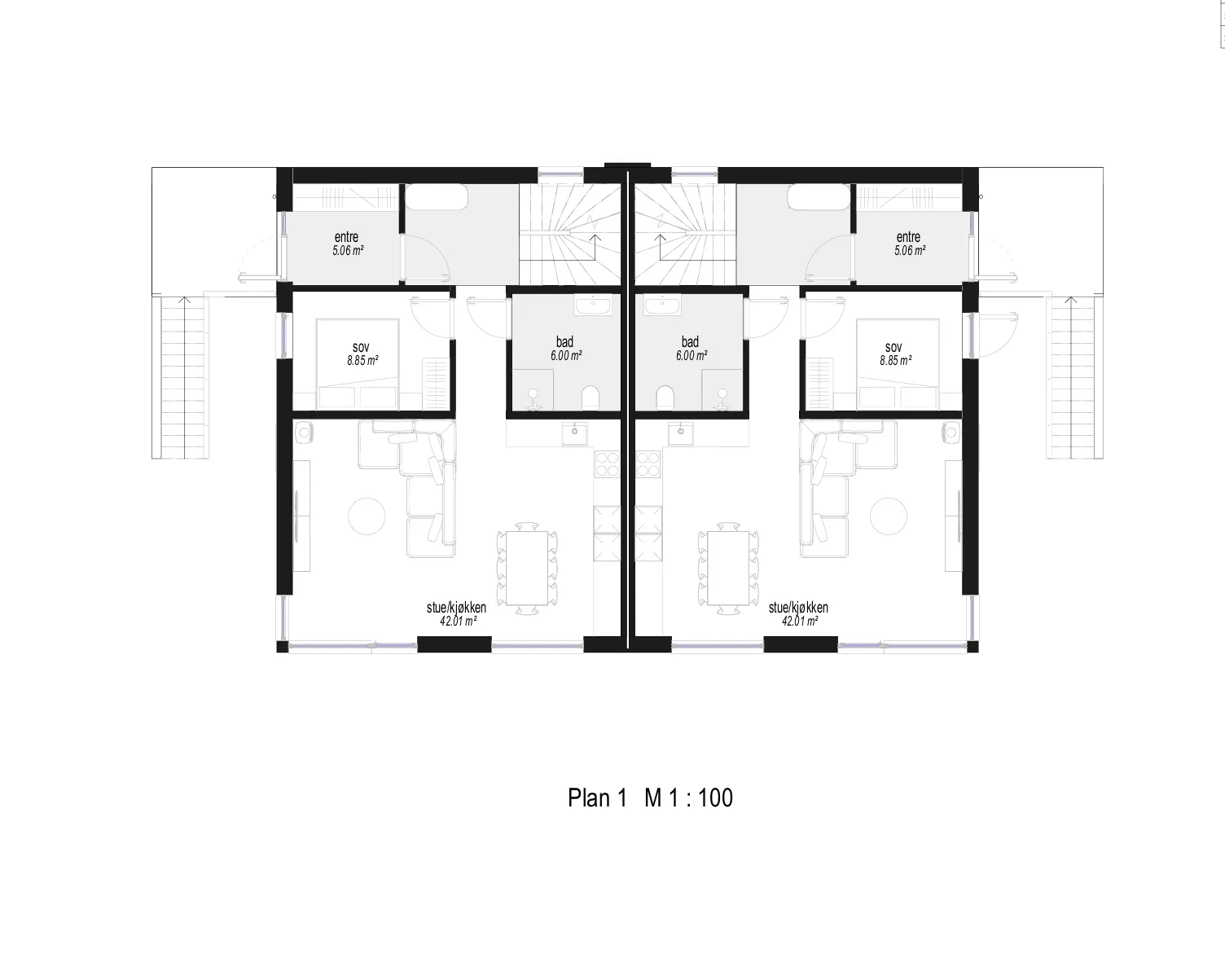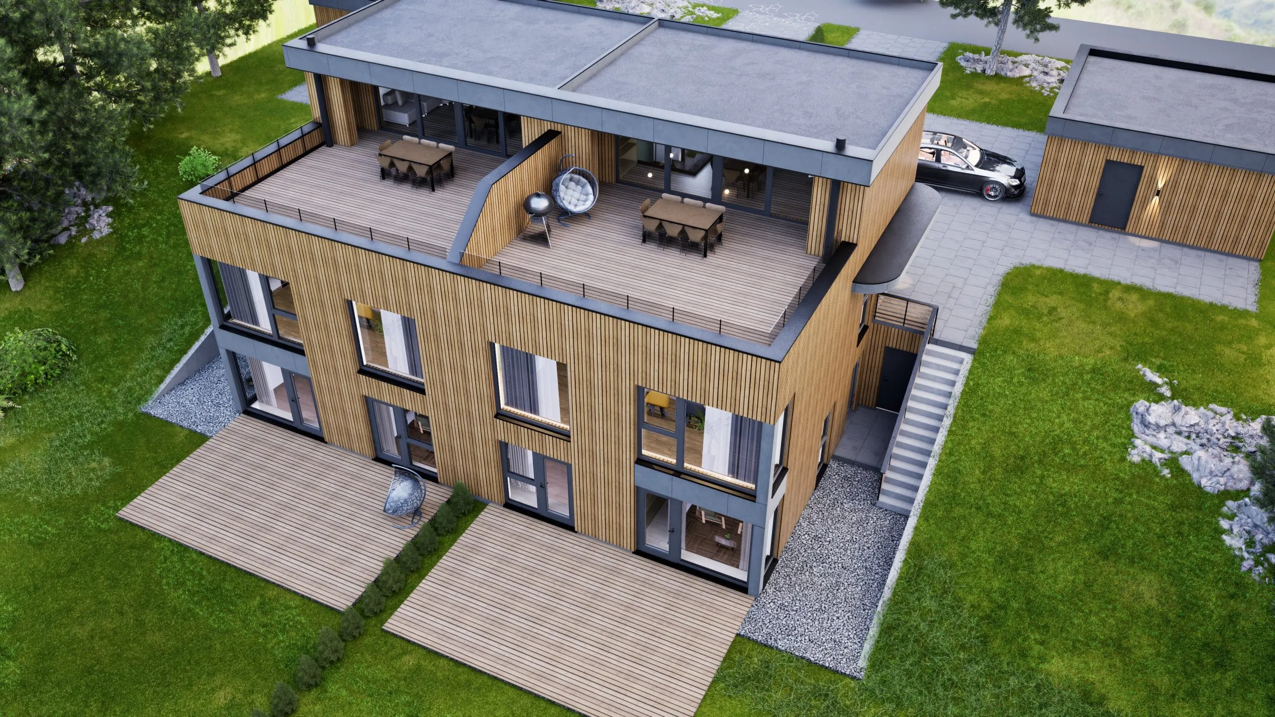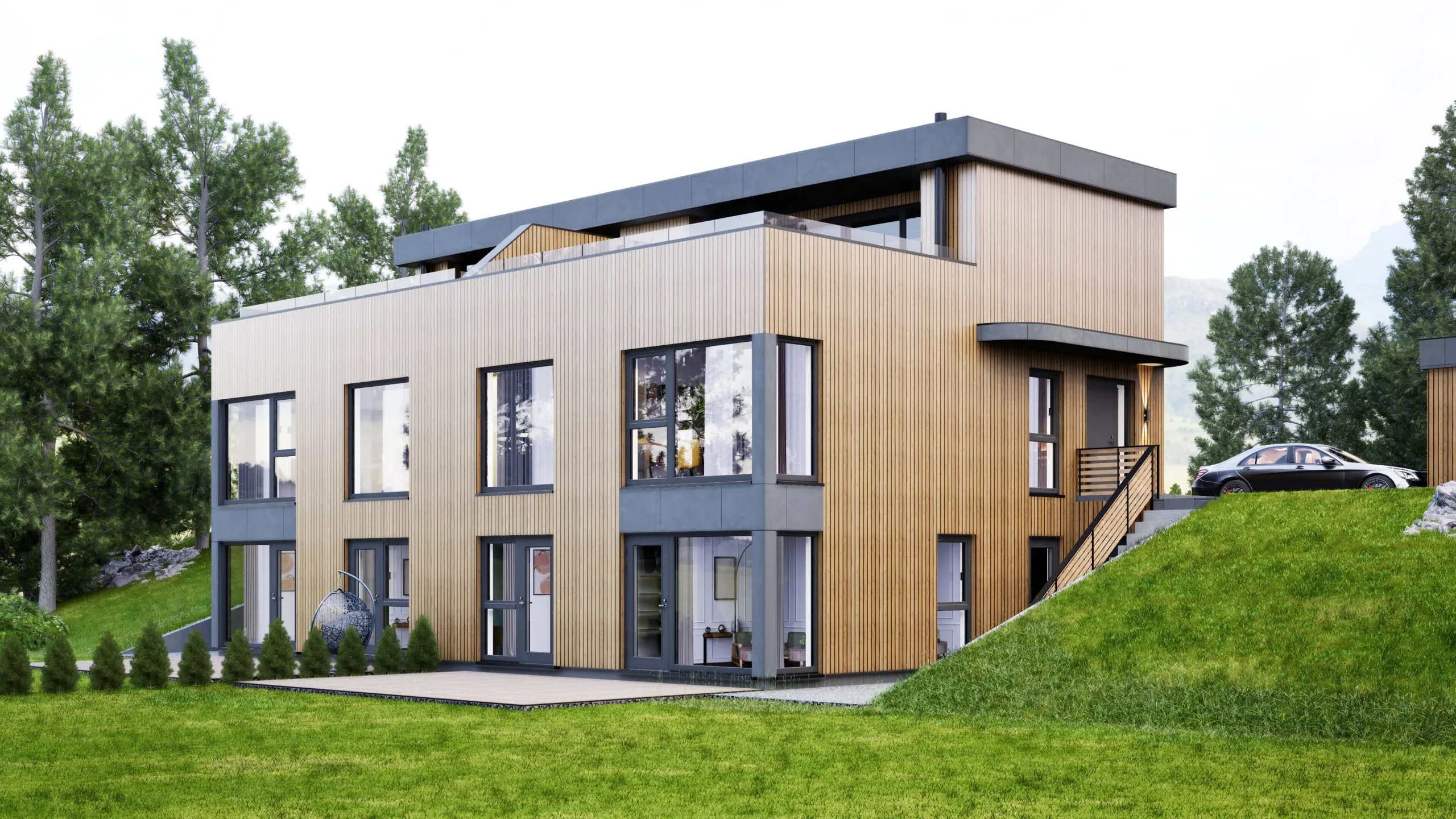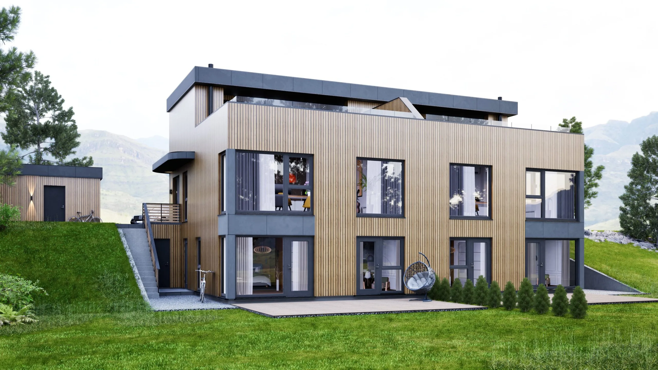 Vi har mer modellen: moderne tomannsbolig med takterrasse