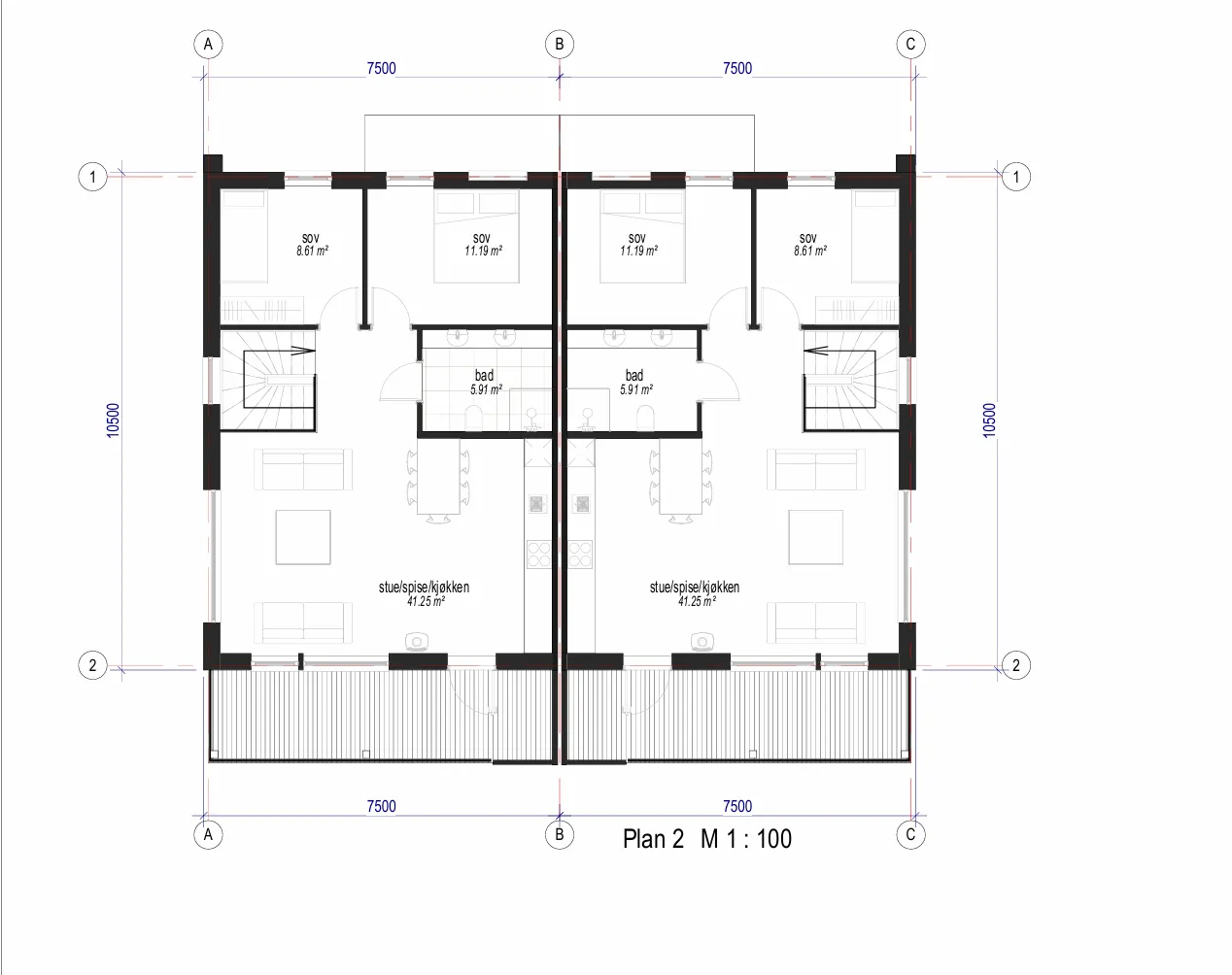 Hvis du leter etter et økonomisk tomannsboligprosjekt, ta en titt på våre eksisterende prosjekter. Hvis du ikke finner et passende alternativ, designer vi et tilpasset prosjekt for deg – uavhengig av om tomten din er flat eller skrå.