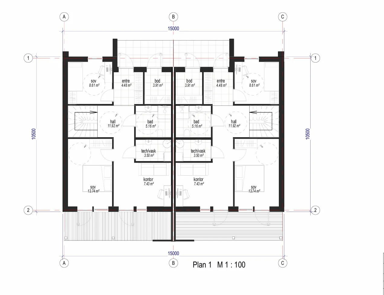 Vi har en annen versjon av denne modellen: moderne tomannsbolig med takterrasse